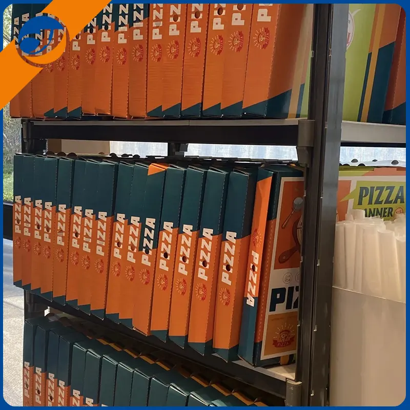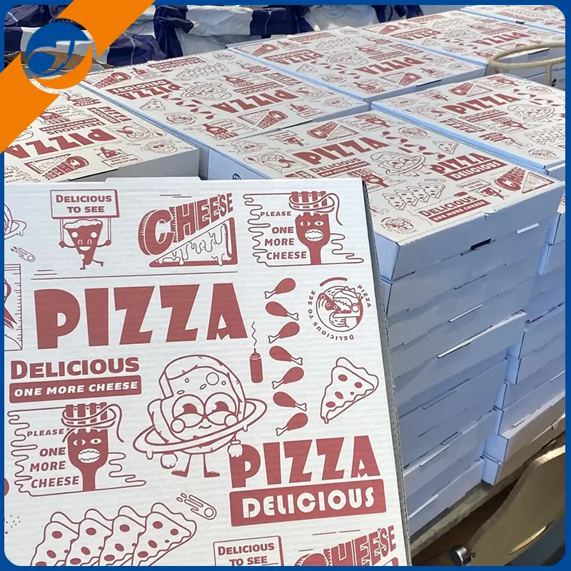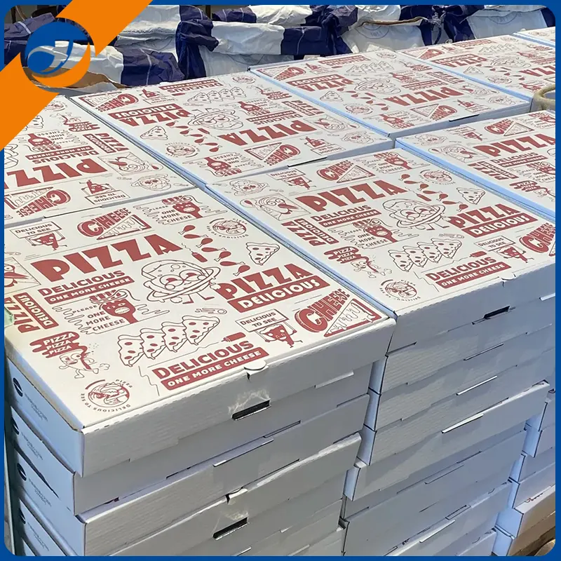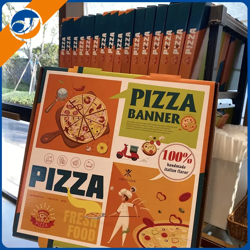 Exquisite pizza box customized printing process supports high-precision restoration of brand LOGO, illustrations or theme patterns, and enhances brand recognition.