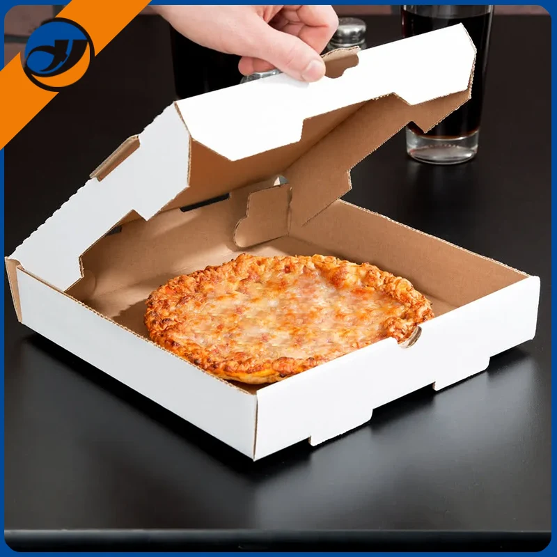 Large pizza box is a sturdy, rectangular container typically made of corrugated cardboard, designed specifically to hold and transport one or more large-sized pizzas. Large pizza box features a lid that securely closes to keep the pizza warm and prevent toppings from spilling, ensuring that your delicious pie arrives at your doorstep or party fresh and ready to enjoy.