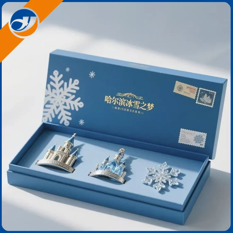 The magnetic gift box is constructed from high-density cardboard or eco-friendly fiberboard, covered with a tactile specialty paper, matte film, or leather-textured material, embodying a luxurious feel.