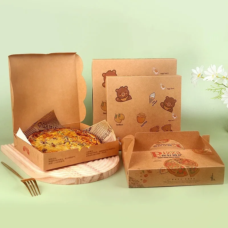 Pizza boxes are usually made of cardboard or similar hard materials, which can effectively prevent the pizza from being squeezed or deformed during transportation.