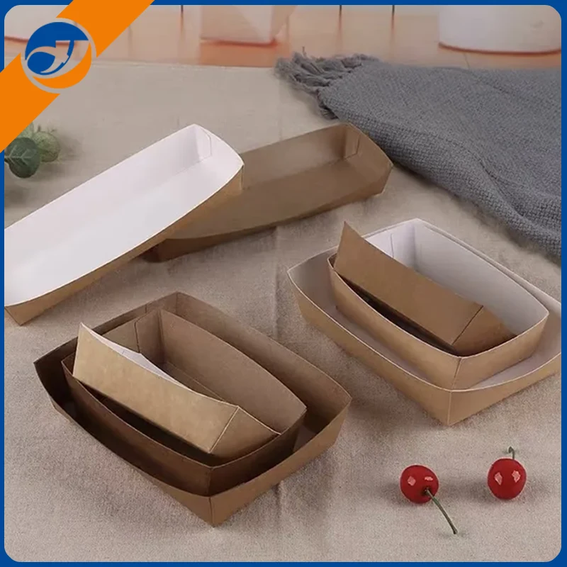 Paper Boat Tray is made of high-quality kraft paper, which is food-grade and environmentally friendly and can be in direct contact with food. Paper Boat Tray has a built-in waterproof and oil-proof coating, which effectively isolates grease and moisture, maintains the taste of food, and ensures the durability of the tray itself. After use, it supports natural degradation or recycling, reduces the burden on the environment, and conveys the concept of green living. Choose Paper Boat Tray, and let every meal become a taste journey that combines creativity, environmental protection and culture!